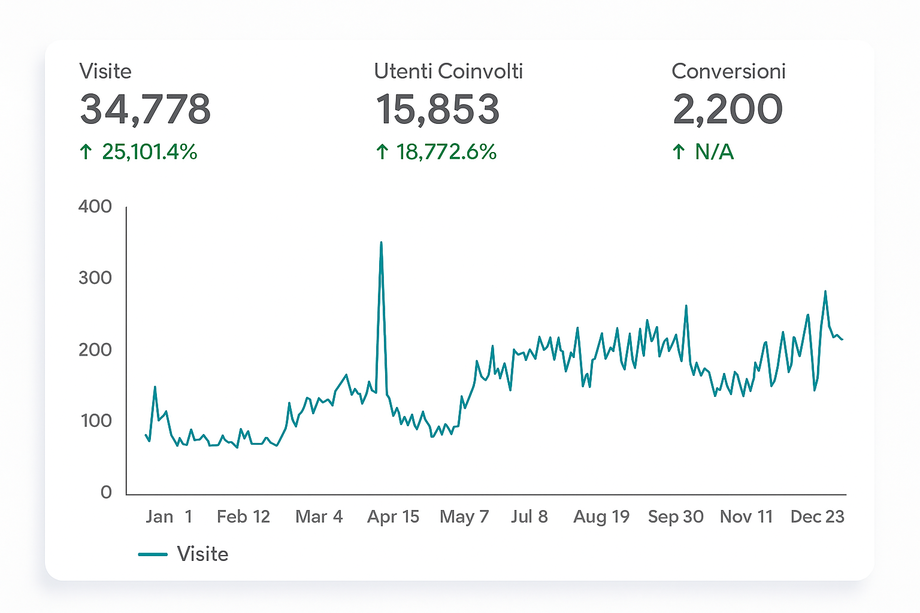 Lavoriamo sulla visibilità organica per attrarre traffico qualificato e sostenibile nel tempo, migliorando il posizionamento del sito nei motori di ricerca attraverso analisi tecniche, keyword strategy e ottimizzazione dei contenuti.
